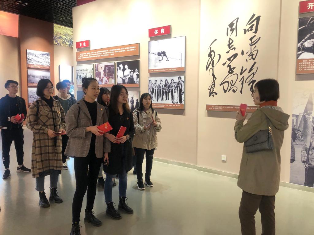 参观过程中,领导和老师与学生党员频频交流,忆起她们上学时的故事,对比现在的美好生活,深感中国的高速发展给人民带来的巨大福利,生活品质的极大提高,让我们更加深刻的感受到新时代中国的欣欣向荣。随后一行人在“不忘初心,牢记使命”前合照留念。