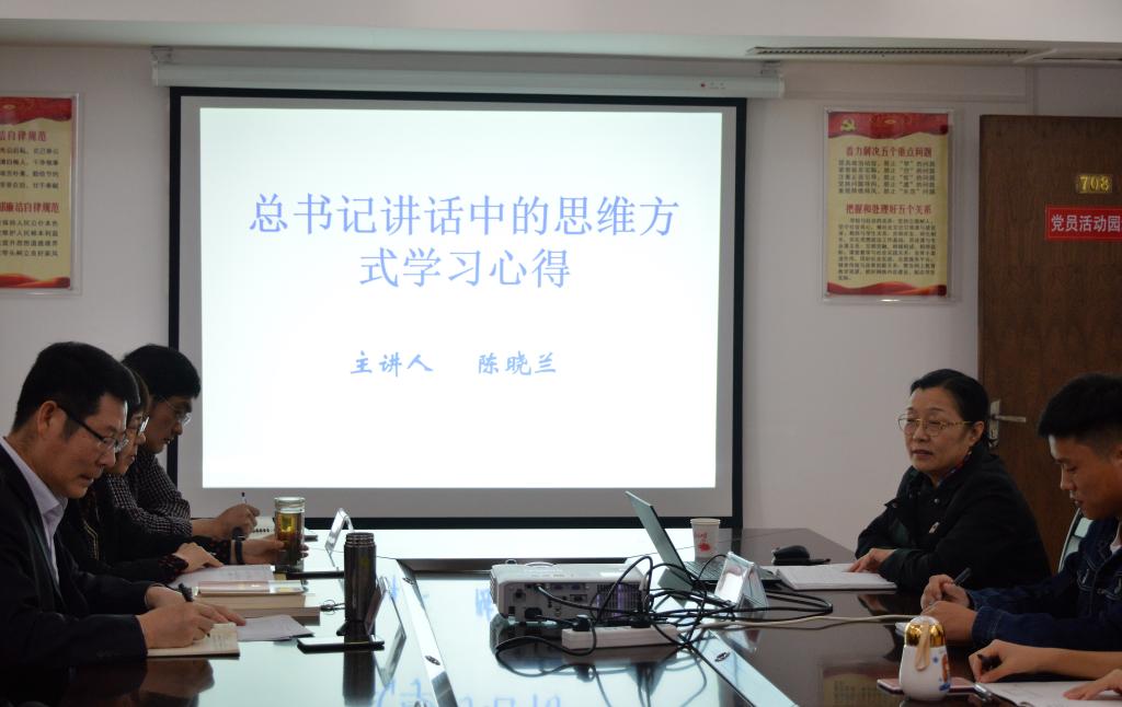 陈晓兰讲授的党课题目是《总书记讲话中的思维方式学习心得》。她具体讲述了习近平总书记的六种思维方式:高瞻远瞩的战略思维;以史为鉴的历史思维;蹄疾步稳的辩证思维;与时俱进的创新思维;防患于未然的底线思维;系统思维。她着重讲述了系统思维。她通过对人类认识发展历程的回顾指出,二十世纪七八十年代兴起的复杂性科学主要表现在研究方法论上的突破和创新。复杂性科学以复杂性系统为研究对象,以揭示和解释复杂系统的运行规律为主要任务,以超越还原论与整体论为主要方法。她通过指标体系的建构案例阐述了系统思维在系统分析中的应用。