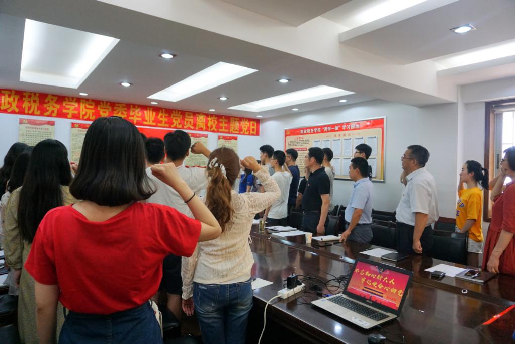 毕业临别之际,为加强对毕业生党员党性教育,引导毕业生党员在走向社会后继续保持共产党员先进性,在中国特色社会主义建设事业的各行各业中发挥模范带头作用,6月20日,财政税务学院党委于舜耕校区行政楼开展了“毕业生党员离校主题党日”活动。山东财经大学党委组织部副处级组织员杨立忠,财政税务学院党委书记李书记玉成,财政税务学院党委副书记张代宝、梅丽萍,财政税务学院专职组织员曹同锋出席此次活动。2015级各班毕业生党员代表参加了本次活动。