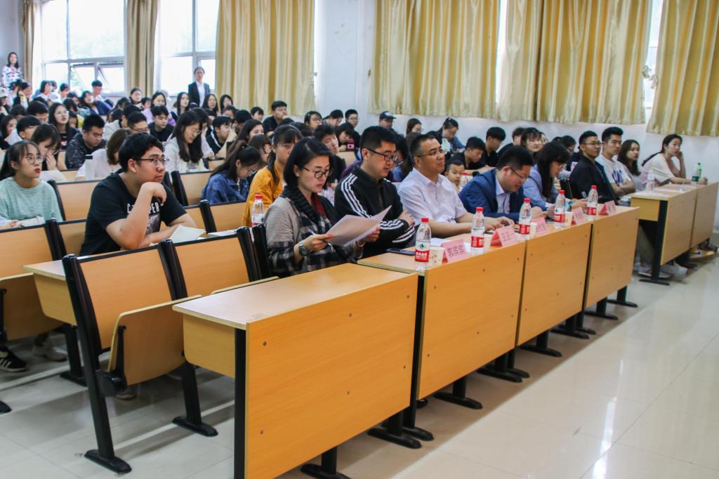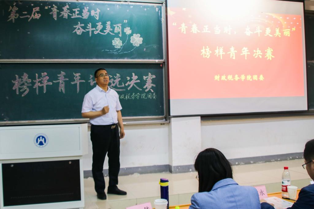 5月13日,财政税务学院第二届“青春正当时,奋斗更美丽”榜样青年评选活动于圣井校区明德楼圆满举行。本次活动由财政税务学院团委主办,学生会秘书处承办。出席本次评选活动的老师有财政税务学院党委副书记张代宝,团委书记、2018级税收学辅导员王正一,2017级税收学辅导员李建永,2017级财政学辅导员郭滨滨,2015级税收学辅导员程佳。学生会主席团的部分成员及各班学生代表作为大众评委参加了本次评选活动,2018级的部分同学观看了活动。
