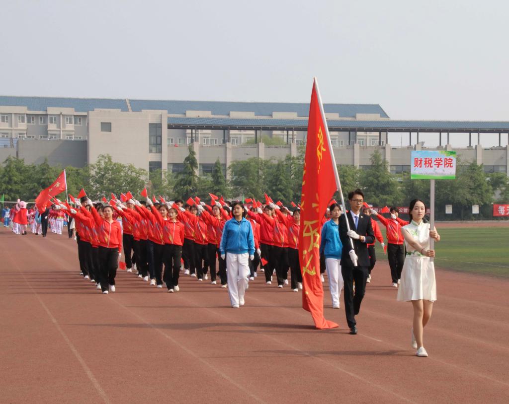 运动会首先进行的是开幕式。庄严的国歌划破了清晨的宁静,鲜艳的五星国旗在田径场上空冉冉升起。升旗仪式之后,各学院方队依次入场。财政税务学院方队的同学们昂首挺胸,迈着整齐有力的步伐,踏着雄壮的进行曲走向主席台,充分展现了财税学子奋勇争先、永不言弃的精神风貌。