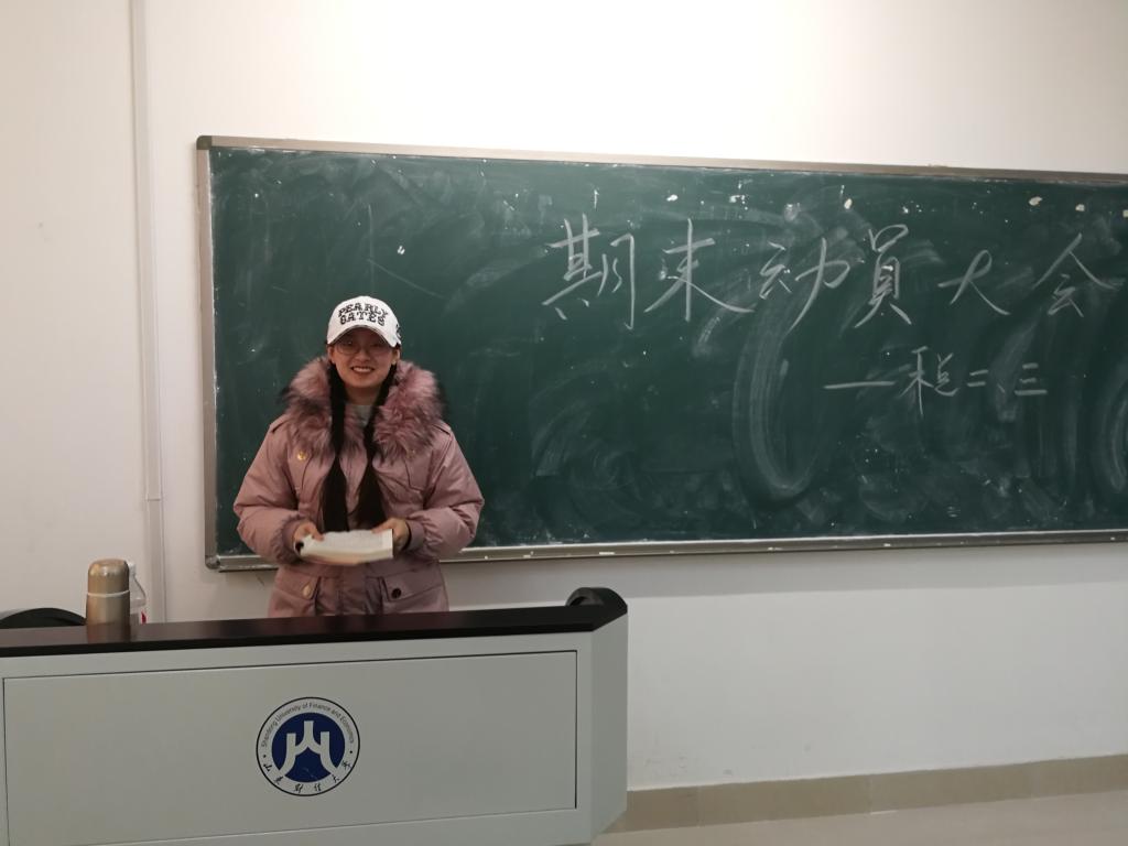 郭滨滨老师针对期末复习与考试纪律两方面做了重点强调。首先在期末复习方面,她强调三点,一是要抓牢基础、复习到位。“基础不牢、地动山摇,基础不稳、做题不准”,尤其是平时学习习惯不好,基础不牢靠的学生,更应充分利用期末复习的时机,狠抓基础,保证基础知识不丢分。二是改错纠错很重要。她提醒同学们应该建立易错题集,并反复练习,直到自己会做为止。三是要培养优良的时间观念。优良的时间观念不仅体现在能按时上下课,还体现在能充分利用碎片时间复习,期末复习压力大,要学会见缝插针的学习,最大程度地利用空余时间复习。郭老师还建议同学们要早睡早起,首先从作息时间上改变自己,这样才能保证复习效果。其次在考试纪律方面,她多次强调了诚信考试的重要性。她说期末考试不仅是对专业只是的系统检验,更是对个人道德品质的一次检验,自觉遵守考试纪律是每一位大学生都应当遵守的道德规范,学校对违反考试纪律的学生会严肃惩处,同学们要自尊自爱,切莫因小失大。之后郭老师宣读了学校对本月初两位重修考试作弊学生的处理决定,同时再次强调考试作弊后果的严重性。最后,郭老师希望同学们能够认真复习,积极备考,以优异的成绩回报老师和亲人。