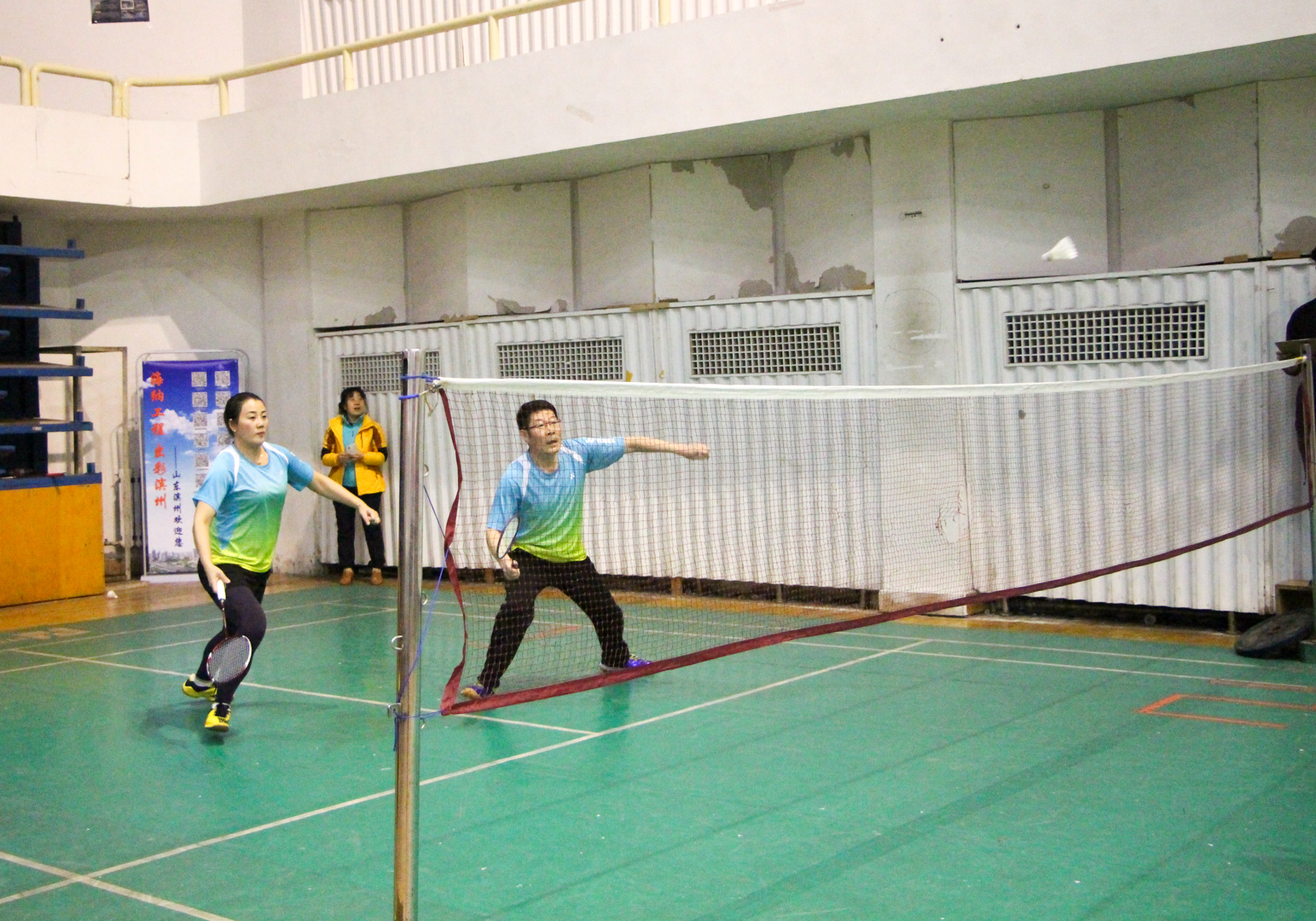比赛气氛紧张热烈,李玉成书记轻松拿下第一分,给全队队员带来信心。但对方队员实力强劲,分差逐渐扩大。李峻汝老师不甘落后,展现了非凡的羽毛球技巧。只见双方队员你来我往不相上下,分差不断缩小,比赛进入白热化阶段。紧接着,赵宝廷老师不仅在前场与对手对攻,还在后场不断进行扣杀,精彩绝伦。参赛老师们愈战愈勇,在最后关头,李峻汝老师与赵宝廷老师的组合连续追分。但由于对手实力过强,队员们最终止步八强。赛后,双方队员握手示意,相互赞赏,展现了体育精神风尚。
