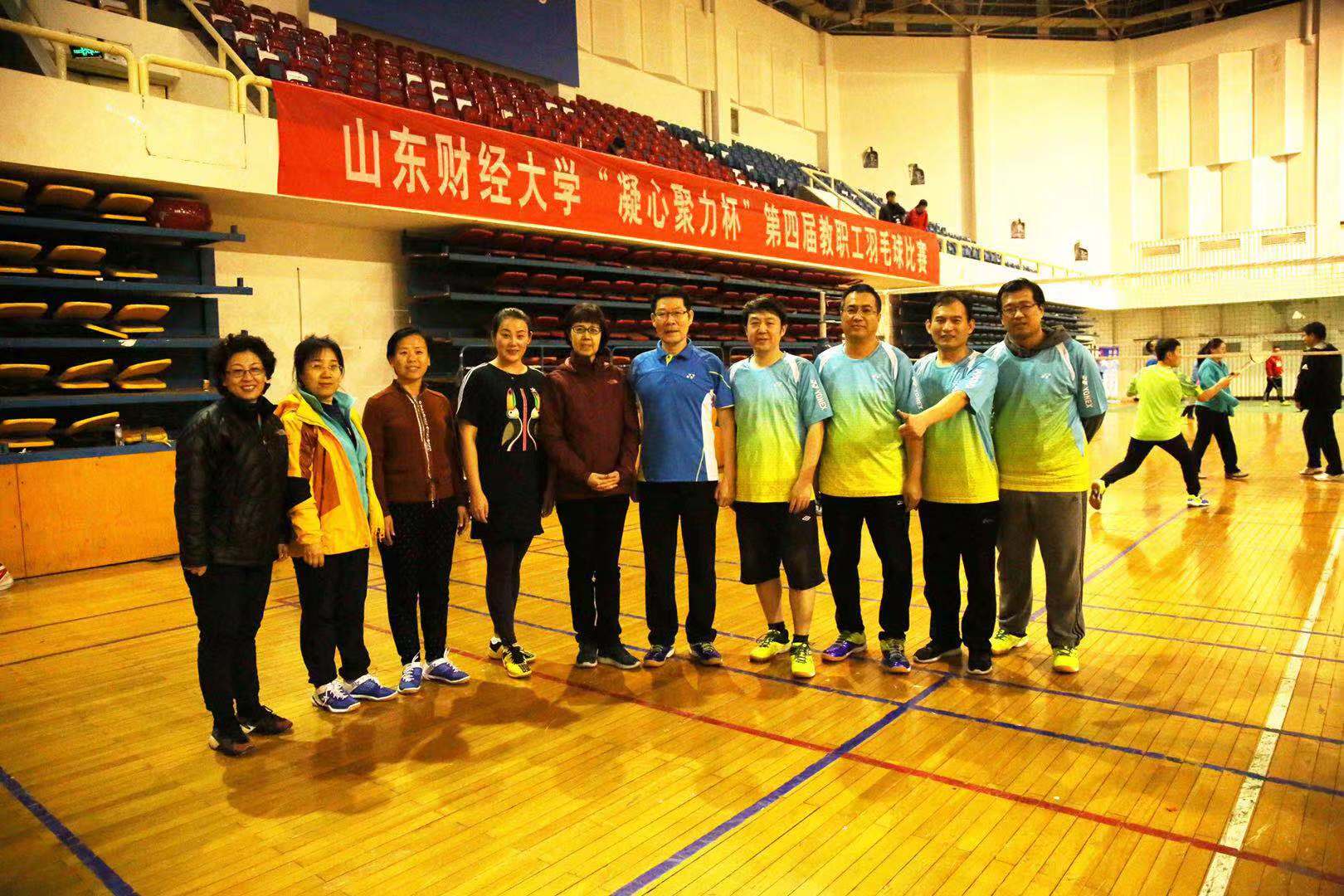 11月23日,山东财经大学“凝心聚力杯”第四届教职工羽毛球比赛于舜耕校区体育馆成功举办。由财政税务学院党委书记李玉成,财政税务学院院长、党委副书记谢申祥,党委副书记梅丽萍、张代宝,财政系主任赵宝廷,郭磊教授,孟庆平教授,郑法川老师,王清妍老师,栾熙花老师,2018级财政学辅导员李峻汝组成的参赛队伍成功晋级八强取得优异成绩。