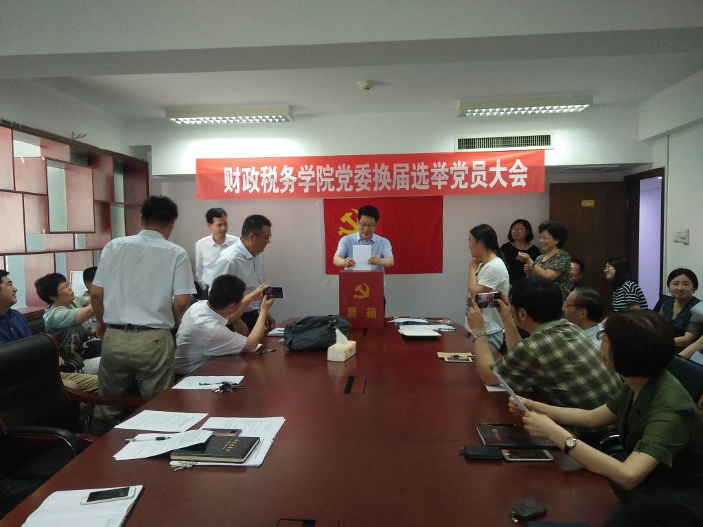 大会议程第二项,党委书记李玉成主持选举新一届中共山东财经大学财政税务学院委员会。党员表决通过了选举办法及监票人、计票人建议名单,并宣布下一届委员会委员名额和候选人名单。大会以无记名投票、差额选举的办法选举产生了新一届中共山东财经大学财政税务学院党委会委员。李玉成、谢申祥、张代宝、梅丽萍、赵宇、马恩涛、王静当选为新一届党委委员会成员。