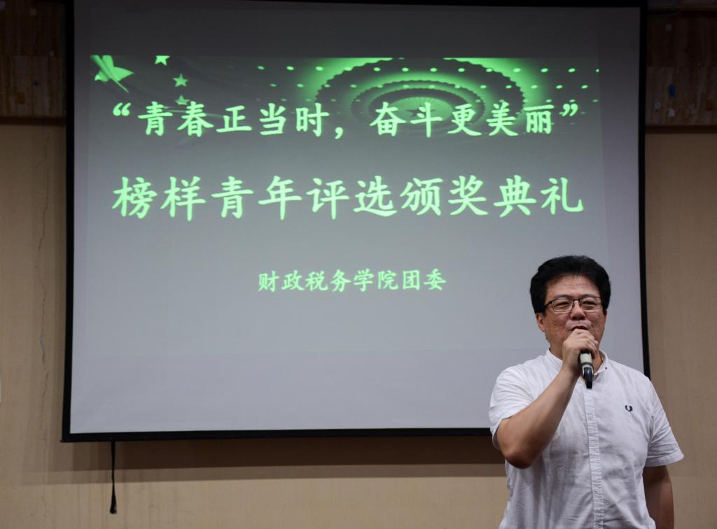 最后,财政税务学院院长谢申祥做总结。他首先对到场嘉宾的参与表示感谢,对所有获奖者表示祝贺。谢院长指出,本次活动为同学们提供了展示自己风采的机会和平台。他希望获奖者作为学院的青年榜样,在学习、工作上更加努力。希望同学们以青年榜样为标杆,勤奋学习知识和本领、充实自己,做对社会有用的人才,成为学院的骄傲。