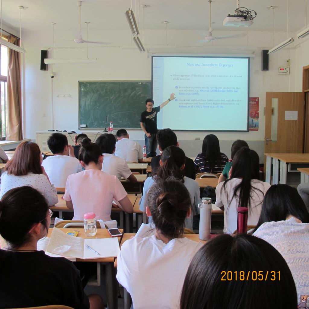 2018年5月31日下午,南京大学副教授、美国范德堡大学研究员谭用博士受邀前来我院做题为“企业异质性、需求积累与汇率传导”的学术报告,报告由财政税务学院院长谢申祥教授主持,副院长马恩涛教授以及学院部分师生到会聆听了报告。