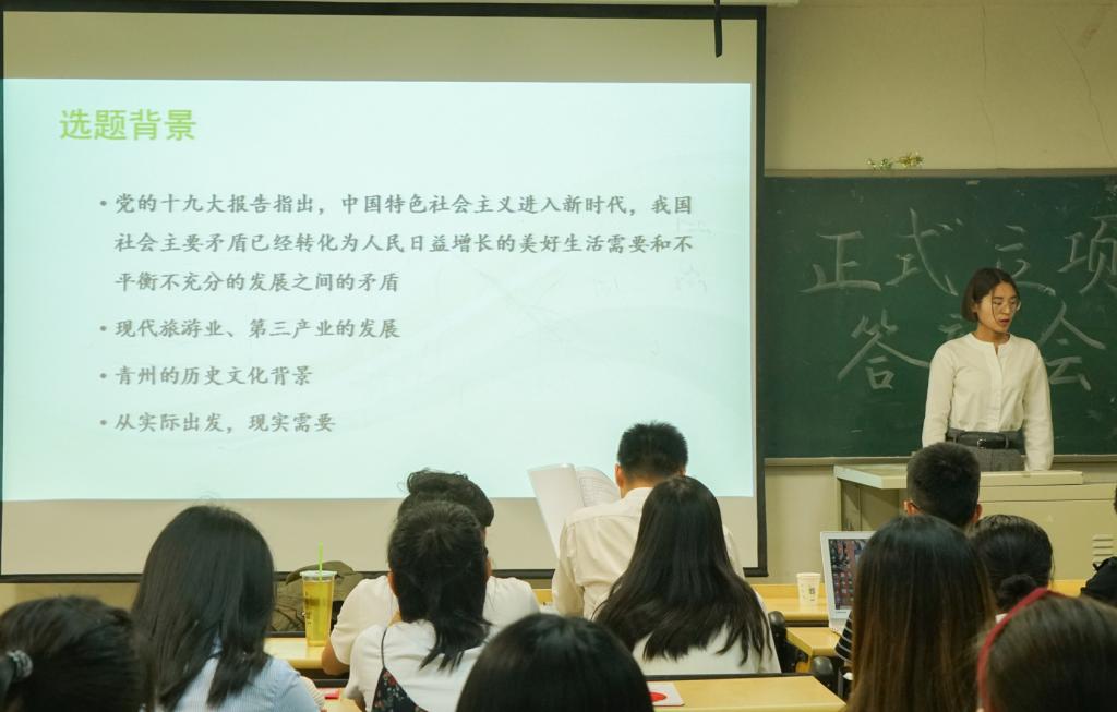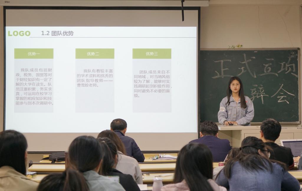 答辩会分为两个环节,首先由各社会实践队队长结合ppt从调研背景、实践意义、预估成果等方面介绍了各自的选题。每位队长都精神焕发,热情饱满,将团队的核心思想展现给老师。随后,老师对每个团队的选题内容依次进行点评并提出了建议。