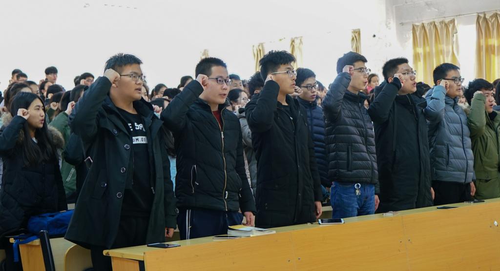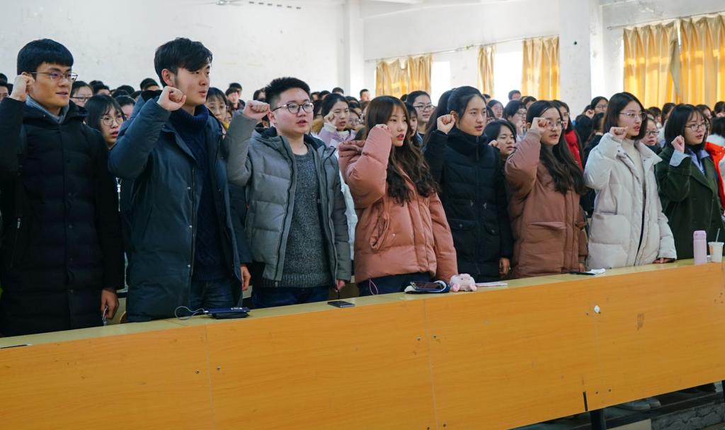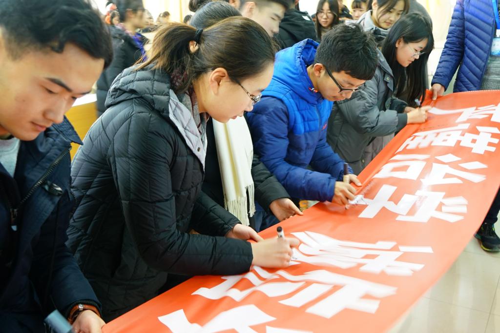 最后,各班同学代表上台,在“严谨治学诚信为人”的横幅上签字。考评委助理带领全场同学进行庄严宣誓,在同学们铿锵有力的宣誓声中,本次大会圆满落下帷幕。学院其他年级和专业的学生也通过各种方式召开了期末考试动员会议。(通讯员:刘 畅 朱宇恒 拍 摄:孔凡非 周梦菲)
