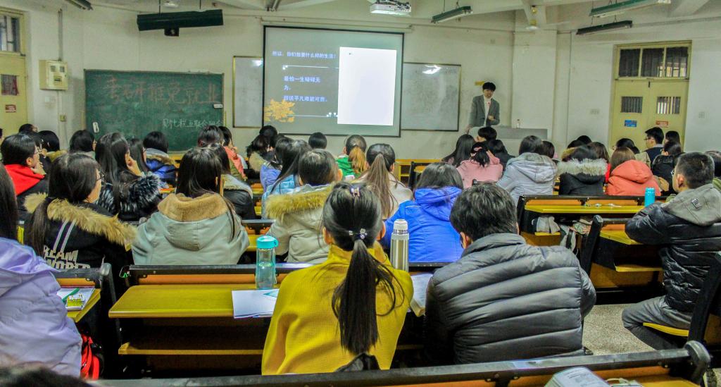 赵国辉,优秀就业学生代表,任财政学六班班长、学生会外联部部长等职务,在校期间成功应聘多种实习经历。他从自身的实习经历出发,用幽默的语言详细向大家介绍了就业的经验,并大家介绍了我院创业就业中心的架构。他强调,要对自身有正确的认识,合理分析自己,找出自身的兴趣点;要在实习工作中总结经验,学习优秀工作管理者的管理模式;在自我反思、自我否定中提高自己的综合专业素质,脚踏实地,养成良好的工作习惯。他以“强者恒强,胜者为王”来激励同学们,勤奋努力,为自己的目标不断奋斗。