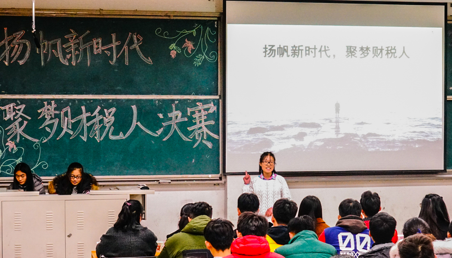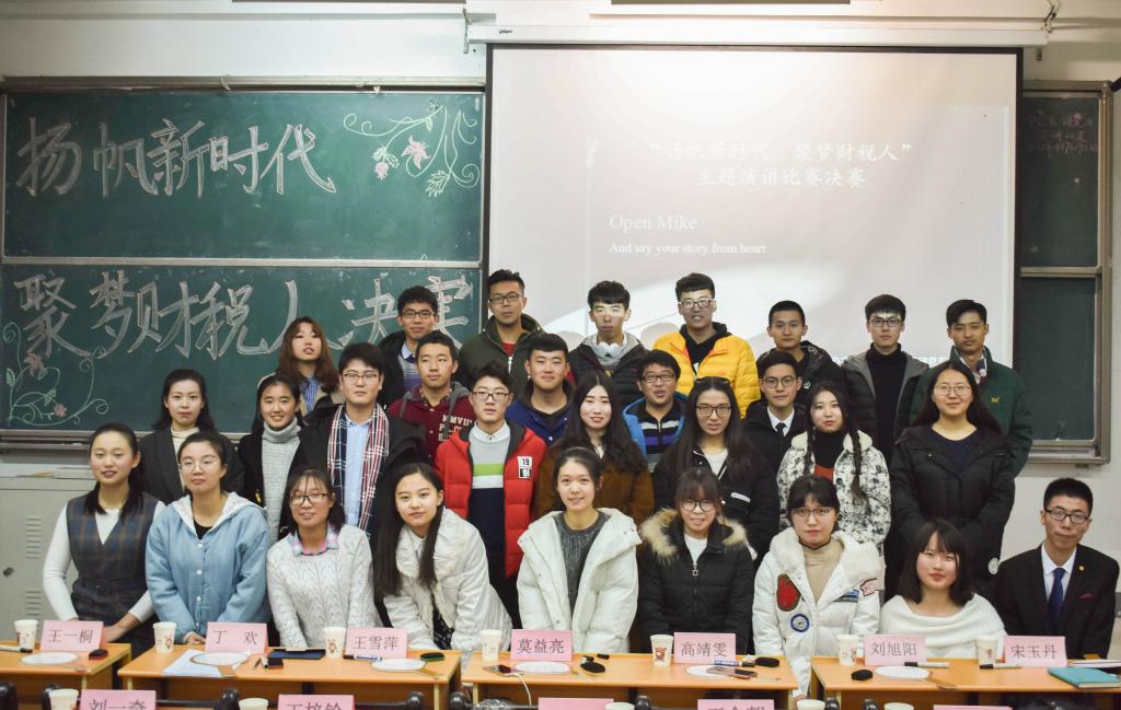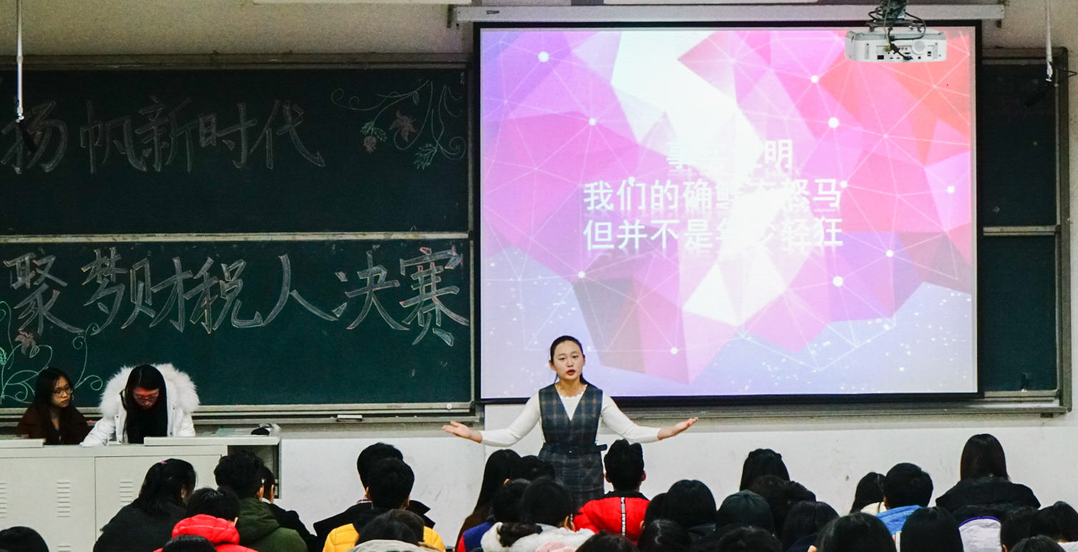 12月10日,“扬帆新时代 聚梦财税人”演讲比赛在圣井校区明德楼圆满举行。本次活动由财政税务学院团委主办,财税演讲社承办。出席活动的评委有王雪萍、高靖雯、王一桐、彭玉琢、丁欢、戴晓静、刘旭阳、宋玉丹、莫益亮。2017级部分学生观看了本次比赛。