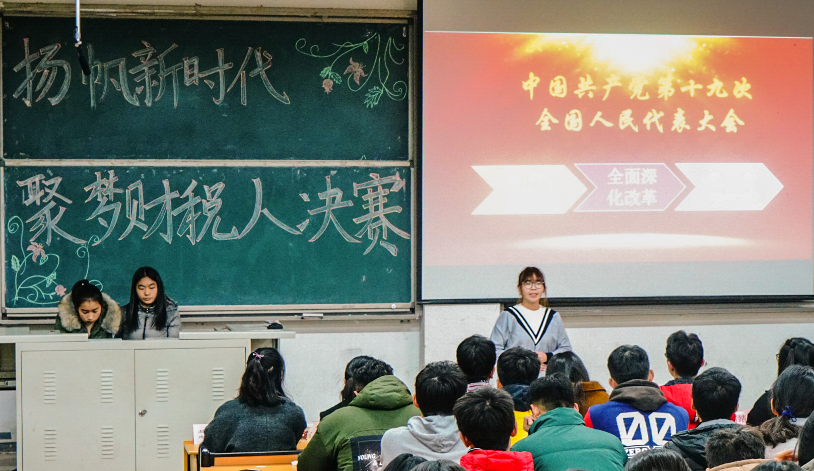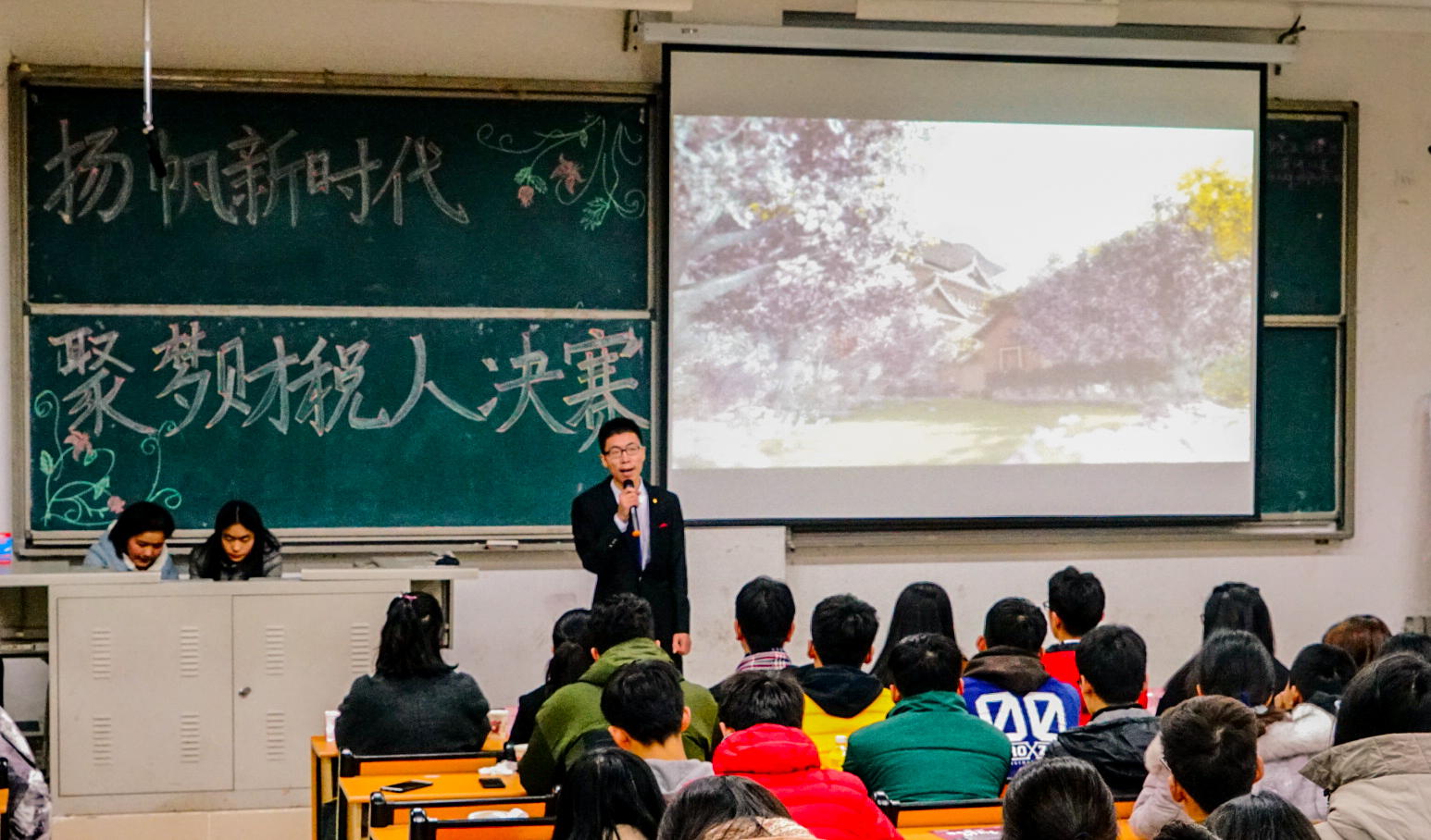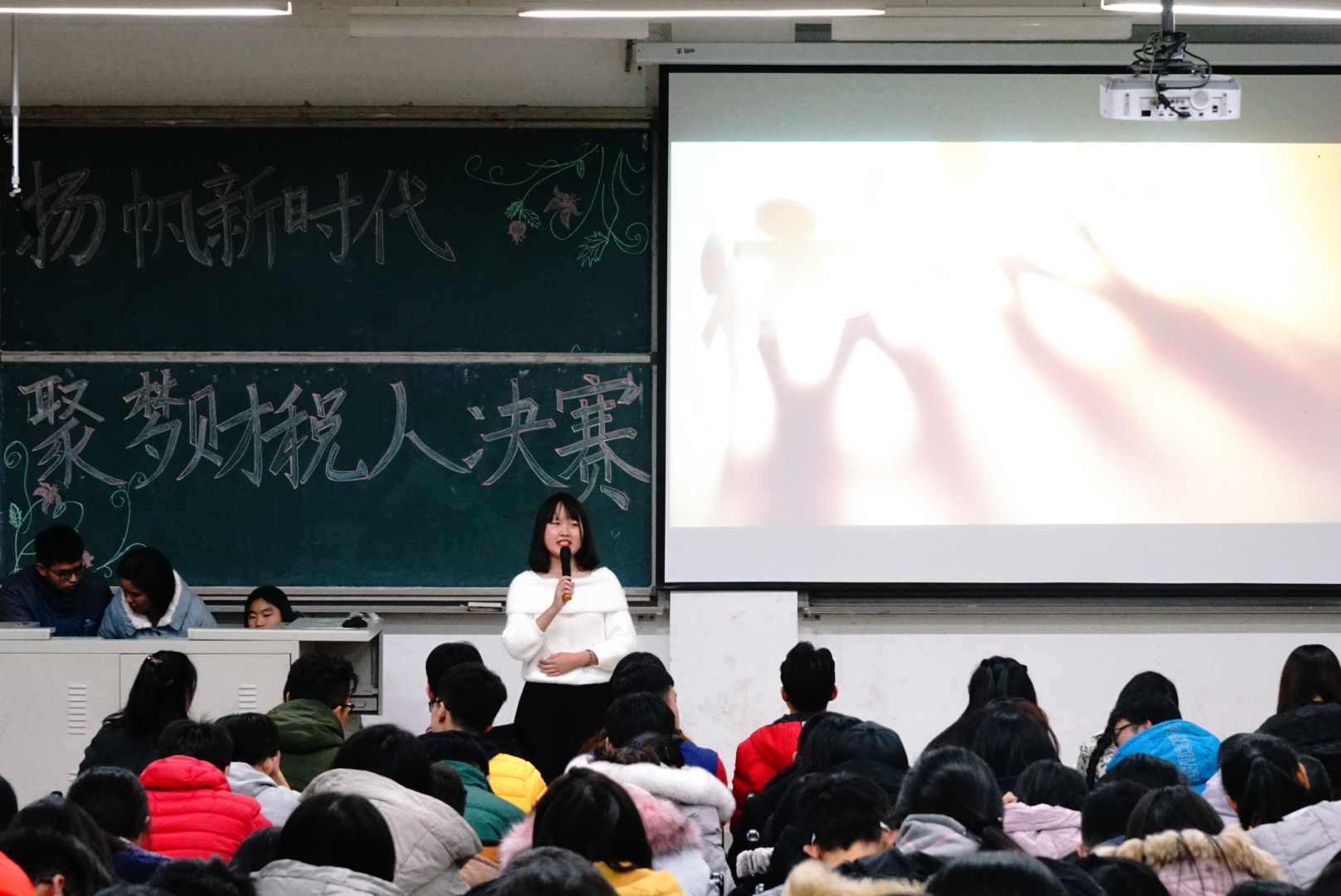 12月10日,“扬帆新时代 聚梦财税人”演讲比赛在圣井校区明德楼圆满举行。本次活动由财政税务学院团委主办,财税演讲社承办。出席活动的评委有王雪萍、高靖雯、王一桐、彭玉琢、丁欢、戴晓静、刘旭阳、宋玉丹、莫益亮。2017级部分学生观看了本次比赛。