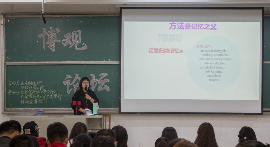 本次博观论坛以英语四六级考试为主题,讲解了四六级备考技巧以及学习英语的不同方法。相信韩老师的指导会帮助财税学子坚定目标、努力向前。(通讯员:王心雨 王天钢)