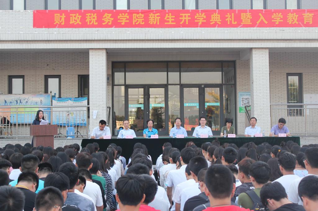 9月14日,财政税务学院2017级新生开学典礼暨入学教育大会于圣井校区敏行楼隆重召开。出席此次大会的有:财政税务学院院长岳军、党委书记李玉成、副院长朱德云、副院长赵宇、副院长李森、党委副书记梅丽萍、党委副书记汤长胜、院长助理马恩涛、2017级辅导员老师李建永、郭滨滨。2017级全体新生参加了此次大会。