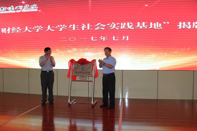 2017年7月19日,在济宁市任城区关帝庙金融街,隆重举行了“山东财经大学社会实践基地”揭牌仪式,出席仪式的领导嘉宾有济宁市任城区人大常委会副主任乔顺利,区政协副主席颜光谱,任城区人才办、财政局、发改局、教体局、金融办、水利局等部门负责同志,山东财经大学财政税务学院院长、淮海财金研究院院长岳军,山东财经大学团委书记刘奇耀,财政税务学院党委副书记汤长胜,财政税务学院教授郭磊,财政税务学院副教授郭健,山东财经大学财政税务学院副教授、淮海财金研究院执行院长汪崇金,财政税务学院团委书记王正一,财政税务学院团委辅导员程佳。济宁市任城区金融办主任周超主持揭牌仪式。