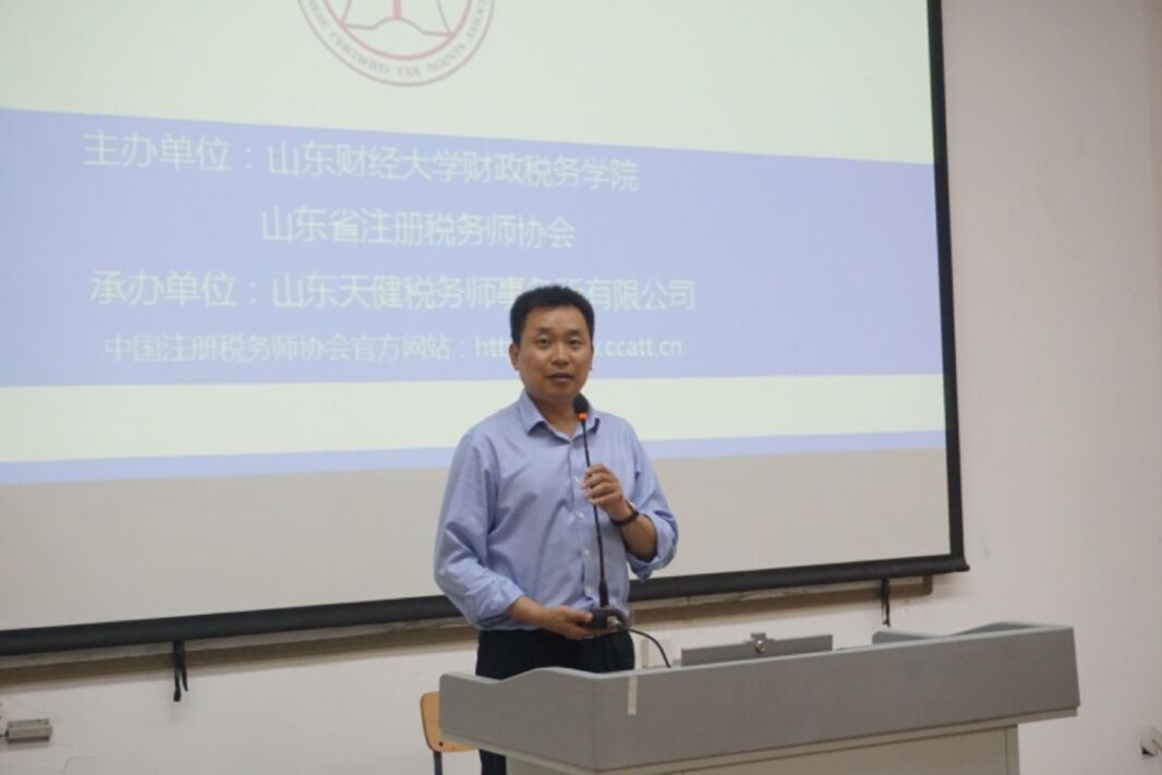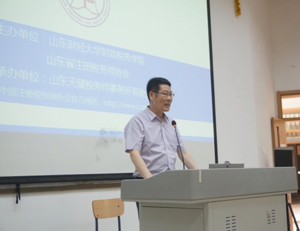 我院党委书记李玉成为本次活动致辞,欢迎山东省注册税务师协会副会长兼秘书长孙世满,山东天健税务师事务所总经理庄勇刚的到来,感谢孙世满副会长的分享和庄勇刚总经理为我院学生提供的实习就业机会。李书记表示希望我院学生能够在本次活动中有所收获,为自己的学习、职业生涯吸取经验。