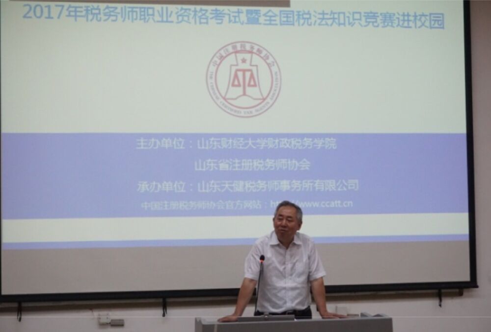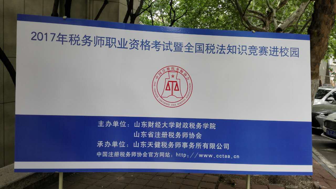 5月11日,“山东省税务师职业资格考试宣传暨全国税法知识竞赛进校园”宣传活动在山东财经大学舜耕校区成功举办。本次活动由山东财经大学财政税务学院主办,山东天健税务师事务所承办。出席此次活动的有山东财经大学财政税务学院党委书记李玉成、团委书记王正一、山东省注册税务师协会副会长兼秘书长孙世满,山东天健税务师事务所总经理庄勇刚及相关工作人员。