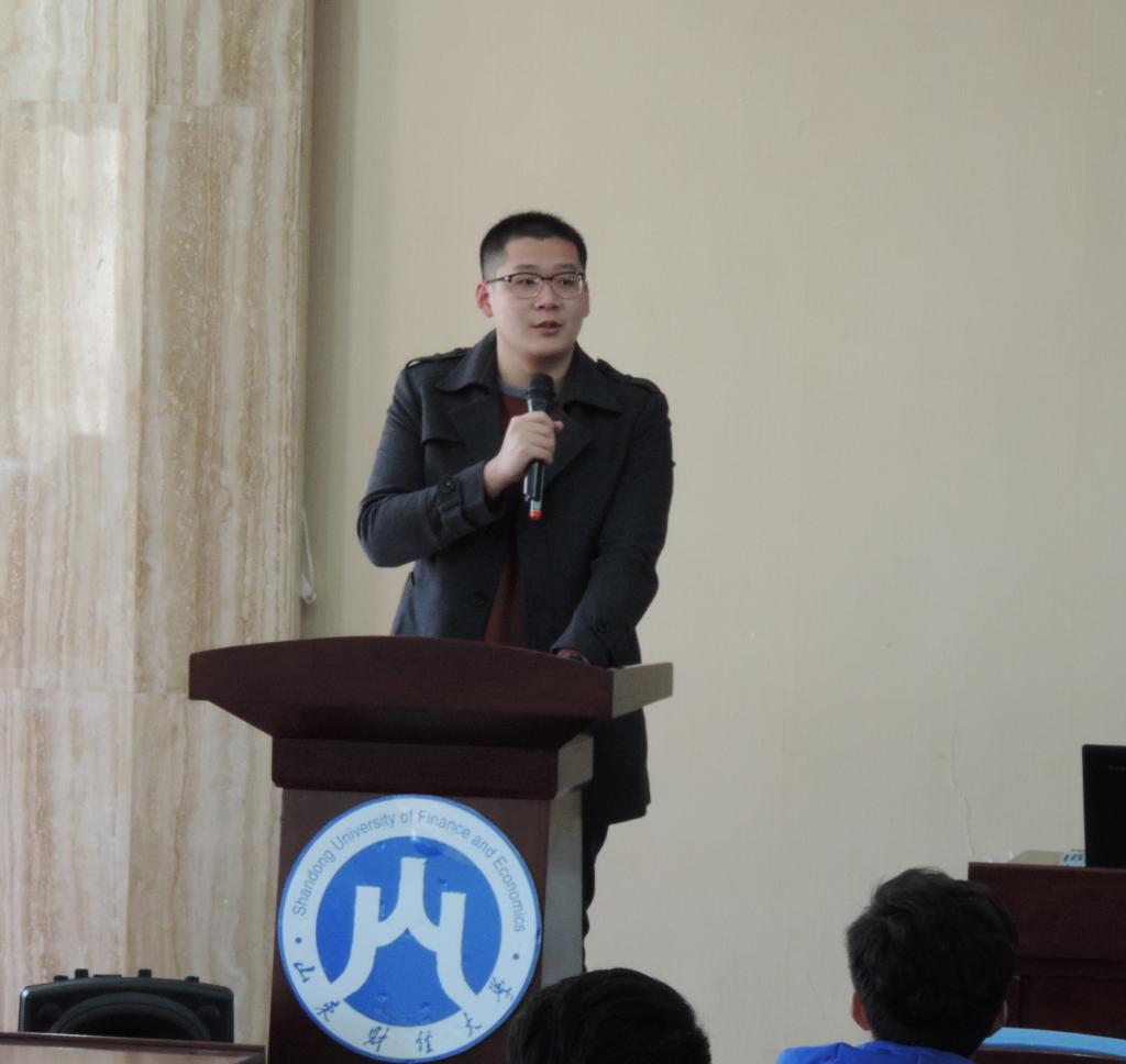 大会第二项,2014级学生会主席赵华梁对其任职工作进行述职总结。首先,他对支持学生会工作的领导老师以及同学表达了诚挚的谢意。随后,他阐述了学生会在上一年的工作情况,他总结道:“我们秉承以学风建设为主的思想,共开展了30余项工作,还以创新形式开展了多项活动。”他简要介绍了博观论坛、新闻播报、读书活动等工作,并表示这些活动均受到了同学们的热烈欢迎。最后,他对新一级学生会提出希冀,希望新成员能认真工作、勇于担当,也希望学生会各部门之间通力合作、共同发展,同时还要注意要与其他组织和社团相互交流、取长补短。