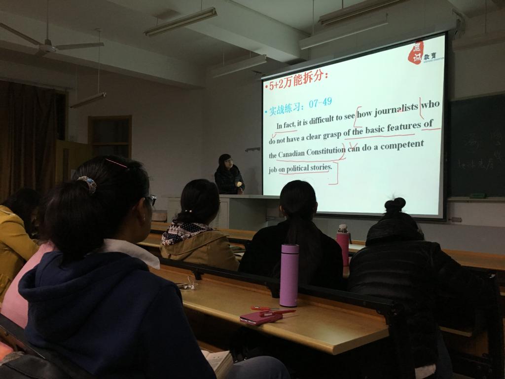 考研目标确定之后的备战阶段该如何应对,韩老师给出回答。她先以英语一、英语二的分值分布情况为比较,提出要从分值分布看出难易点。之后,韩老师提到每个同学都应有自己的目标设定,一定要具体到某一题型,这样才能懂得自己距离成功还需付出多少汗水。期间韩老师讲授了一些解题的技巧,历年来出题的规律等,同学们受益匪浅。关于考研的准备,韩老师为2018年考研的同学制定了2018年全年规划,每一个阶段的目标及任务、可能出现的挫折及应对措施,一一列入其中。