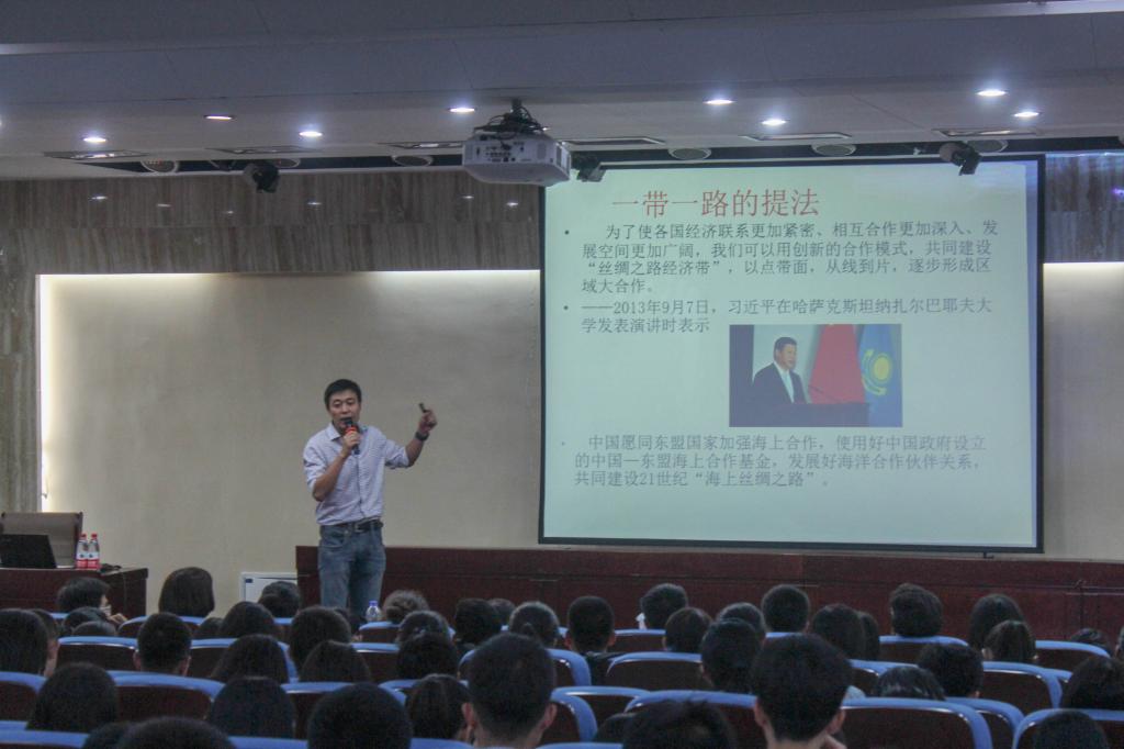 刘伟全老师主要讲述了当前中国经济发展的三个主要问题,分别为“一带一路”战略、货币国际化、供给侧改革。刘老师首先沿着“是什么-为什么-怎么办”这一思路阐述了“一带一路”战略。“一带”是指“丝绸之路经济带”,“一路”是指“21世纪海上丝绸之路”。我国提出这一战略构想主要是为了使世界各国的经济联系更加密切,相互合作更加深入,达到共赢的最终目的。随后刘老师分析了我国实行人民币国际化的优劣势条件,他指出,在当前经济形势的大背景下实行人民币国际化是明智之举。最后刘老师从劳动力、土地、资本、创新这四大要素分析出我国的供给侧改革与西方的区别在于我国的是结构性改革,但要注意的首要问题是要与需求侧同步推进,不能顾此失彼。刘老师在总结时强调这三个问题是相辅相成的,人民币国际化是“一带一路”的货币支撑,而供给侧改革是提高人民币国际地位的重要举措。