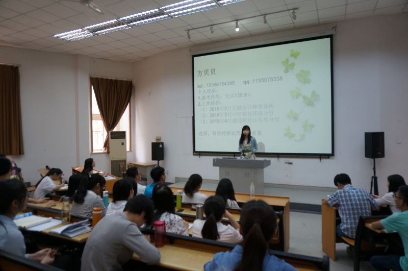 5月18日,财政税务学院考研考公务员经验交流会于舜耕校区第二、三阶梯教室圆满举行。出席此次会议的有学院党委副书记梅丽萍副教授、2013级辅导员李建永老师。本次经验交流会邀请到八位优秀的2012级毕业生代表与大家分享经验。