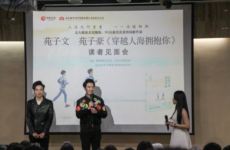 4月29日,财政税务学院博观论坛第八期——苑子文、苑子豪新书分享会于圣井校区敏行楼圆满举行。本次《穿越人海拥抱你》新书分享会由财政税务学院、创实实践中心学术竞赛部、学监会策划部、博观创客空间联合承办,邀请到的主讲人是来自北京大学的双胞胎兄弟苑子文、苑子豪。