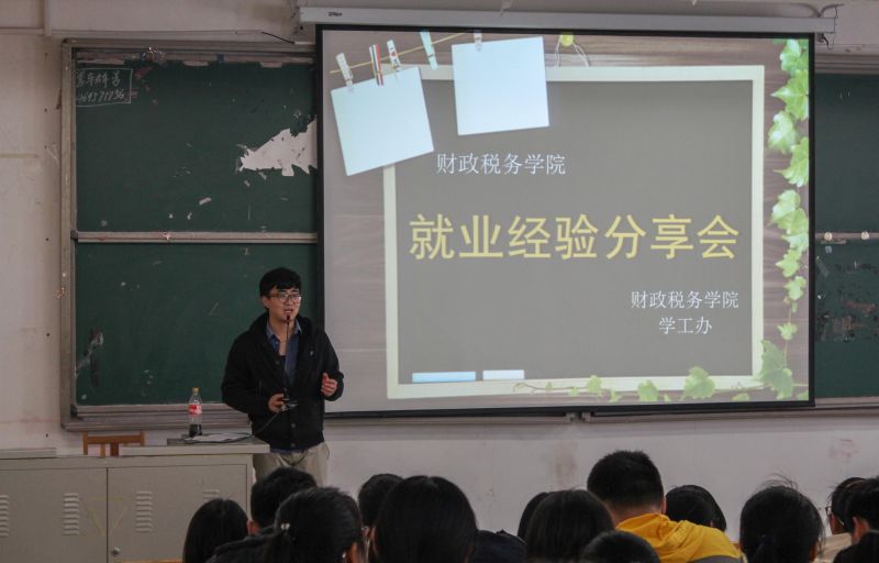 3月10日,财政税务学院就业经验分享会于圣井校区敏行楼顺利举行。本次分享会邀请的主讲人是2014级税务专业研究生杨舸。本次大会由财政税务学院学工办主办,2015级辅导员老师马静出席大会、财政税务学院2015级学生参加了本次分享会。