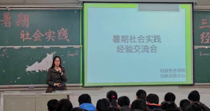 11月27日,财政税务学院暑期社会实践“‘三千计划’实践归来话感受”首场经验交流会在敏行楼圆满举行。本次经验交流会由创新实践中心社会实践部主办。出席这次大会的有财税学院副教授、经济学博士、公共管理学博士后、财政系主任赵宝廷老师,优秀团队代表林海宁、郭峰杉、张利、薛一帆,2013级创新实践中心主任常皓,2014级创新实践中心主任吕珂,创新实践中心副主任和各部部长。2015级财政税务学院部分学生参加了此次大会。