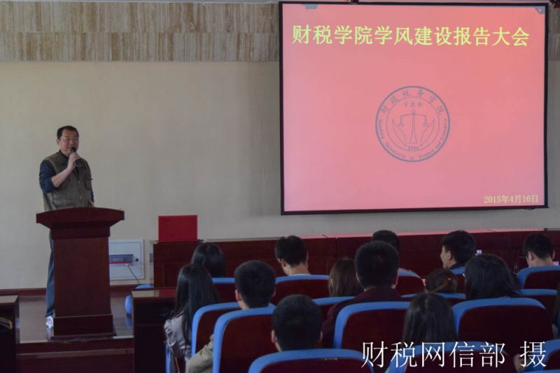 4月16日,财政税务学院学风建设报告大会于圣井校区敏行楼顺利召开。此次会议由财税学院团委主办,学监会文秘部、班级监察部承办。出席大会的领导老师有:财税学院党委副书记汤长胜副教授,团委书记王正一老师, 2013级辅导员李建永老师。学生会、学监会、创新实践中心部长级以上成员,2013级各班班长、团支书、学习委员及2014级全体班委参加了本次会议。