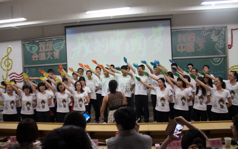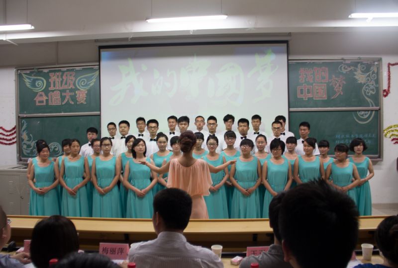 合唱比赛以收集师生美好梦想的宣传视频开场,真挚而又感人的开场祝福博得阵阵掌声。比赛正式开始,财政二班激情演唱的《国家》,国旗猎猎、歌声飘飘,恢弘大气的双面画板展示了万里长城的雄伟,表达了众位同学实现中国梦的拳拳之心。财政一班《走向复兴》弘扬了伟大的民族精神,铿锵有力的指挥令大家屏住呼吸,彩色手掌的绝妙创意将比赛推向高潮。税收三班《祖国颂》端庄的礼服令人眼前一亮,浑厚低沉的男声和清亮清脆的女声完美融合,展示出大气磅礴的气度。合唱比赛各班的节目各具特色,异彩纷呈。最终财政一班获得一等奖,税收二班、税收三班和财政五班获得二等奖。