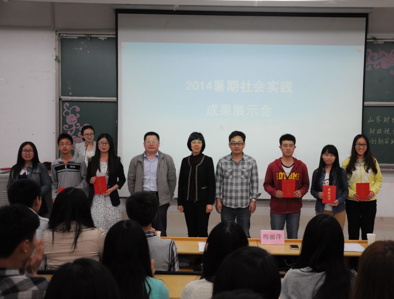 2013暑期社会实践优秀团队成果展示,2012级财政学三班崔文汉根据“农村合作医疗”案例,向同学们介绍了社会实践的基本活动流程,并号召学生参与社会实践。2012级财政学二班徐扬用“问题”、“故事”、“感悟”、“感谢”概括了参加社会实践的心路历程,希望同学们在社会实践的过程中能提高自身的思想境界和道德情操。