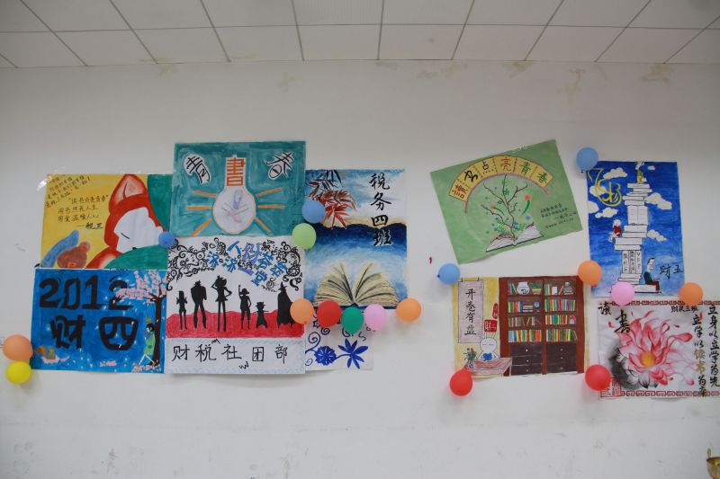 敏行楼408教室是主办方—财政税务学院的成果展。各班特色画报刻画着每个班温馨的小天地;一张张精美的照片再现着财税学子名著选读的盛况;陈列着的奖杯浓缩与记载了过去岁月里财税学院走过的光辉历程。同时,布置在会场的心愿墙受到前来参观的同学们的好评,大家纷纷留下寄语,字字句句书写心愿。