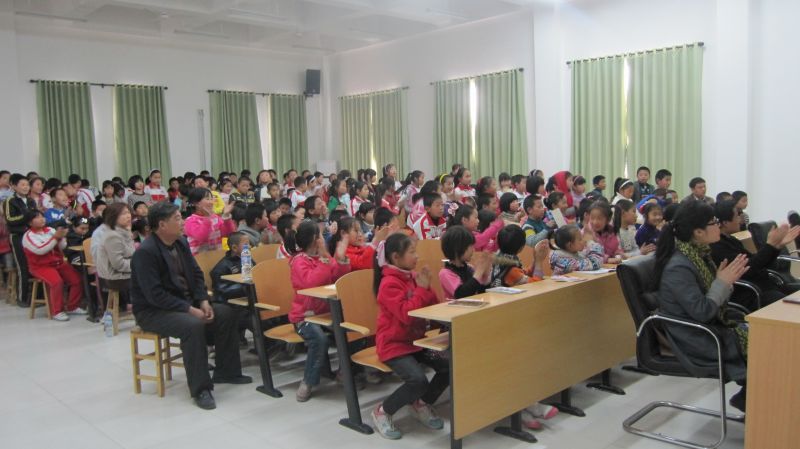 活动开始,首先由2011级张钰同学为小学生作了题为《理想的阳光》的诗朗诵,柔和的音乐,动听的韵律赢得了同学们的阵阵掌声。接着,2011级王海盟同学通过准备的PPT,提问互动,举例分析,从“家庭,校园,社会”三个层次给同学们上了一堂礼仪课——“文明礼仪,伴我行”。课间,由11级部分同学编排的话剧《盲人摸象》和《守株待兔》将活动的气氛推向了高潮。社团部表演的舞蹈《不要不要》,给同学们营造出青春活力的学习氛围。整堂课,同学们积极参加互动,主动回答问题,张弛有度。