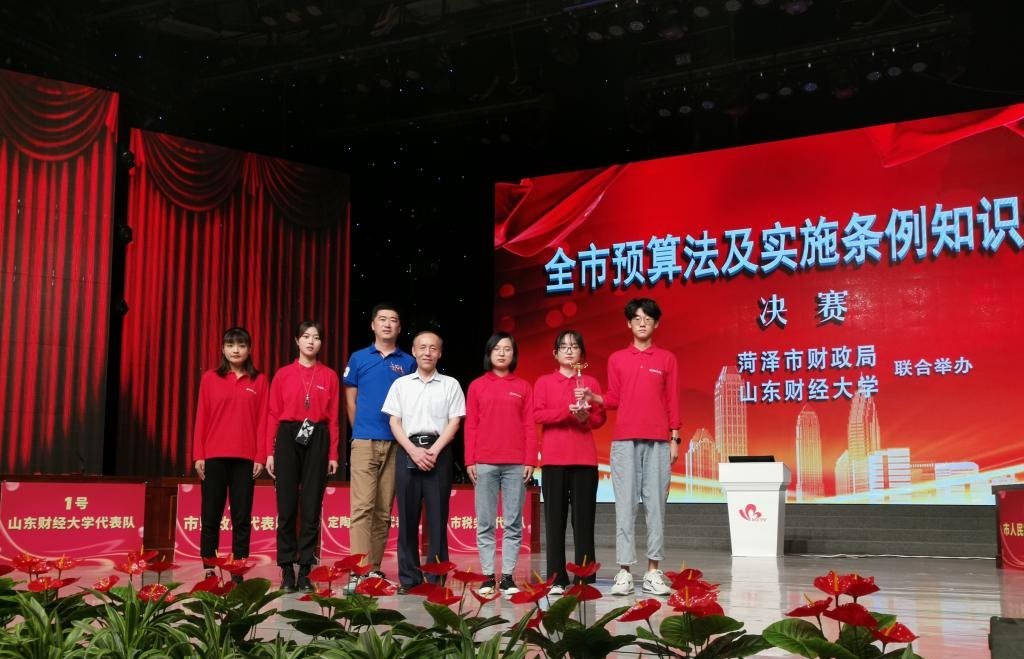9月28日,由菏泽市财政局和山东财经大学联袂举办的《预算法》及《实施条例》知识竞赛决赛圆满结束。由2019级税收学一班赵萌、税收学四班杜浩越、财政学二班宋朝阳、财政学二班朱彩琳、财政学二班宋继武五位同学组成的山东财经大学代表队,在财政税务学院副院长赵宇、团委书记王正一的带领与指导下参加了本次知识竞赛并荣获三等奖。