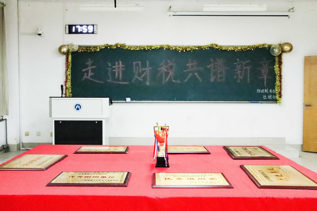荣誉展览中陈列着我院近几年来取得的成就——2019年山东财经大学春季运动会精神文明奖、2019年山东财经大学体育文化节啦啦操大赛优秀组织奖、2020年度新生军训工作先进单位等。我院近些年来取得的荣誉不胜枚举,不仅展示出财政税务学院优秀的教育水平,更展示了财税学子们不断拼搏、勇于创新的精神。