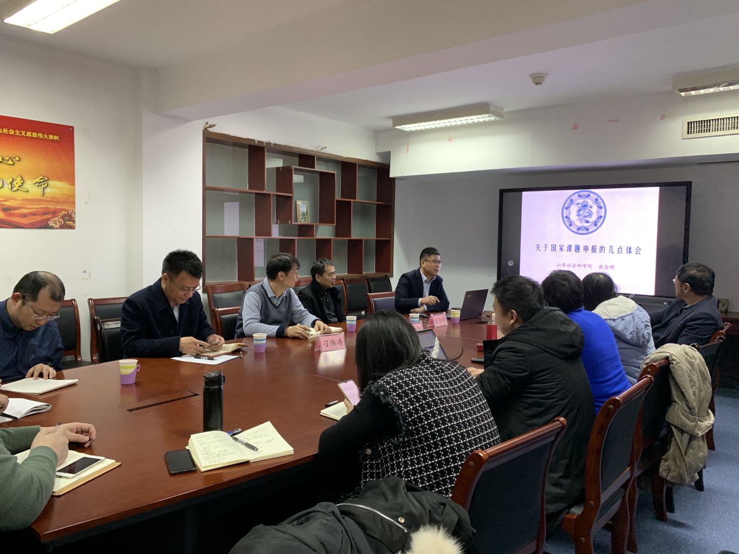 12月2日上午,财政税务学院于办公楼816会议室举办国家社科基金项目申报经验分享会。本次会议邀请了青岛理工大学商学院刁伟涛副教授、山东社科院财政金融研究所张念明副研究员做了申报经验的分享和交流。会议由财政税务学院院长马恩涛教授主持,青岛理工大学朱广印副教授及我院部分教师和博士研究生出席会议并参与讨论。
