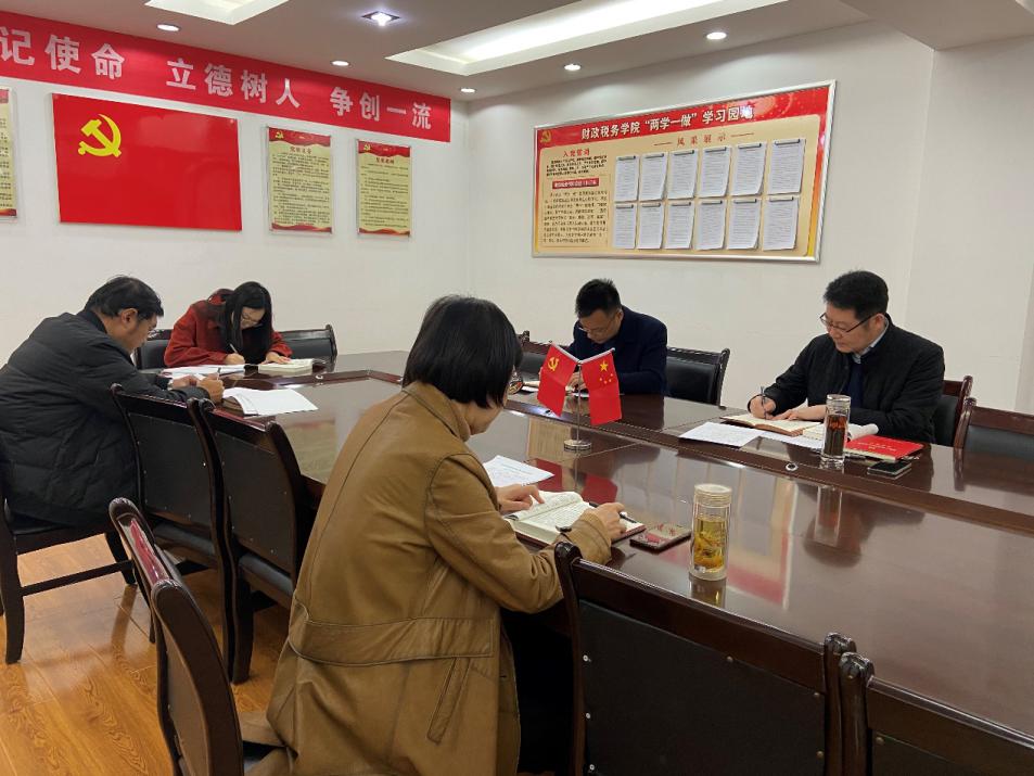 12月23日上午,学院党委理论学习中心组在舜耕校区708会议室进行专题学习。会议重点学习了党的十九届五中全会审议通过的《中共中央关于制定国民经济和社会发展第十四个五年规划和二〇三五年远景目标的建议》(以下简称《建议》)。学院党委书记李玉成主持并领读学习。院长、党委副书记马恩涛,税务硕士教育中心主任、副院长李森,党委副书记梅丽萍参加学习。专职组织员李子云列席会议。