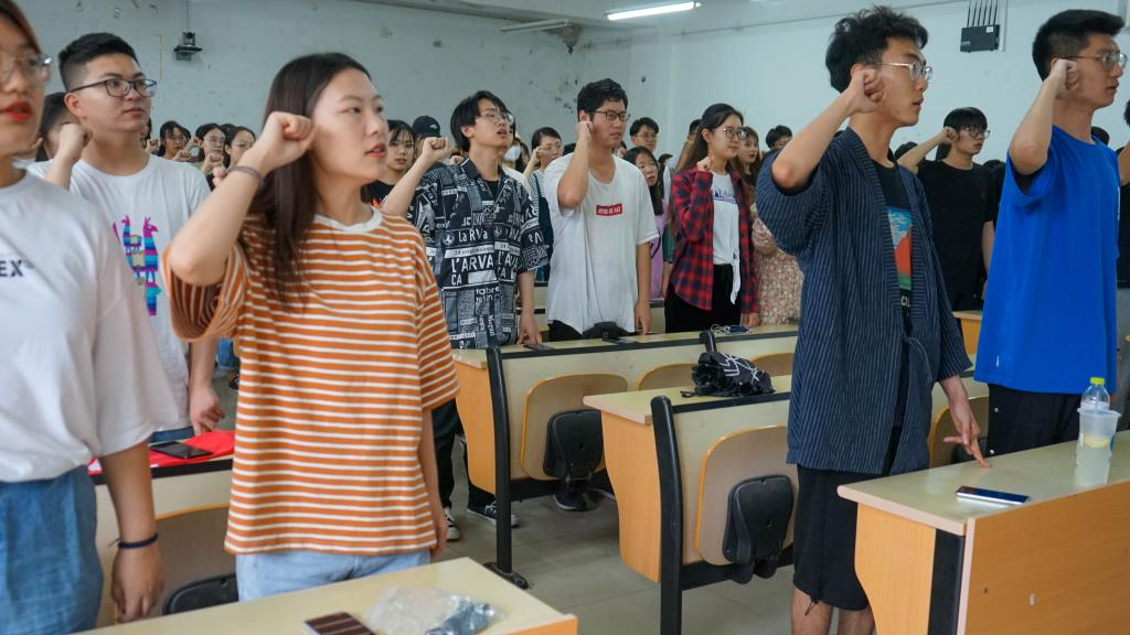 为提高同学们备战期末的热情和信心,自律会考评委助理刘潇涵带领同学们进行考试诚信宣誓,同学们做出“勤勤恳恳学习,堂堂正正做人”的口号,各班班长、团支、副班、学委代表本班同学在诚信横幅上签字,传达财税学子对诚信应考的庄严承诺。