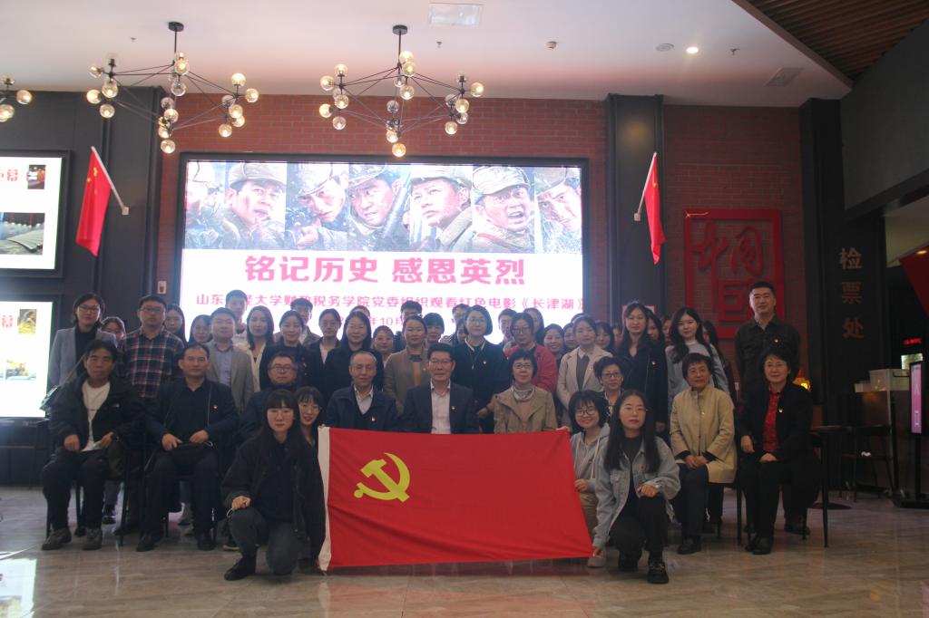 10月14日下午,财政税务学院党委组织师生党员前往新世纪影城观看抗美援朝题材电影《长津湖》。财政税务学院党委书记李玉成,副书记梅丽萍,财政税务学院副院长、党委委员赵宇出席了本次观影活动。教师党员代表、学生党员代表参加了本次观影活动。