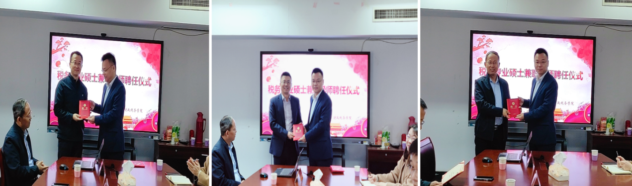 10月21日上午,财政税务学院税务专硕兼职导师聘任仪式暨职业规划专题交流报告会在学院会议室举行。歌尔声学股份有限公司副总经理、董事会秘书贾军安,歌尔声学股份有限公司副总经理、财务总监李永志,以及山东百丞税务服务股份有限公司董事长朱自永等三位业界专家应邀出席,财税学院院长马恩涛教授、 税务硕士教育中心主任副院长李森教授、税务系主任郭健教授以及2021级税务专业硕士研究生参加了此次活动。