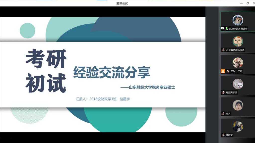 5月14日至5月15日,财政税务学院“扬帆筑梦,研途有我”线上考研交流分享活动圆满举行。本次活动由财政税务学院主办,财政税务学院学习部承办。此次活动旨在帮助同学们更好地做好考研规划和解答考研过程中的疑惑,为同学们指明考研方向和奋斗目标。2018级获得推免资格的和考取各院校硕士研究生的学生代表受邀出席本次活动,2019级、2020级部分同学参与本次活动。