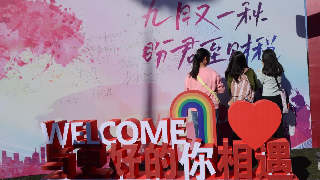 与此同时,学院贴心地为新生们准备了财政税务学院的定制卡套,为同学们留下了美好的入学回忆。2022级新晋学子们在“我爱财税”的立牌旁合影留念,在宣传墙上潇洒地写下自己的签名,在骄阳下肆意地绽放灿烂的笑容,在见证着自己与财政税务学院的初相遇。