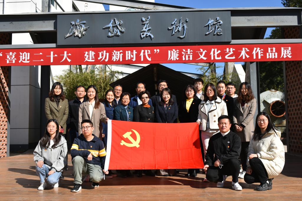 为迎接党的二十大胜利召开,进一步加强廉洁文化建设、树立文化自信,10月11日上午,财政税务学院组织“喜迎二十大 建功新时代”廉洁文化艺术作品展参观活动。学院党委书记刘波,院长李森,党委副书记张代宝、滕晖,副院长郭健、赵宝廷,党支部书记、教师代表和学生党员前往燕山校区海岱美术馆进行参观。