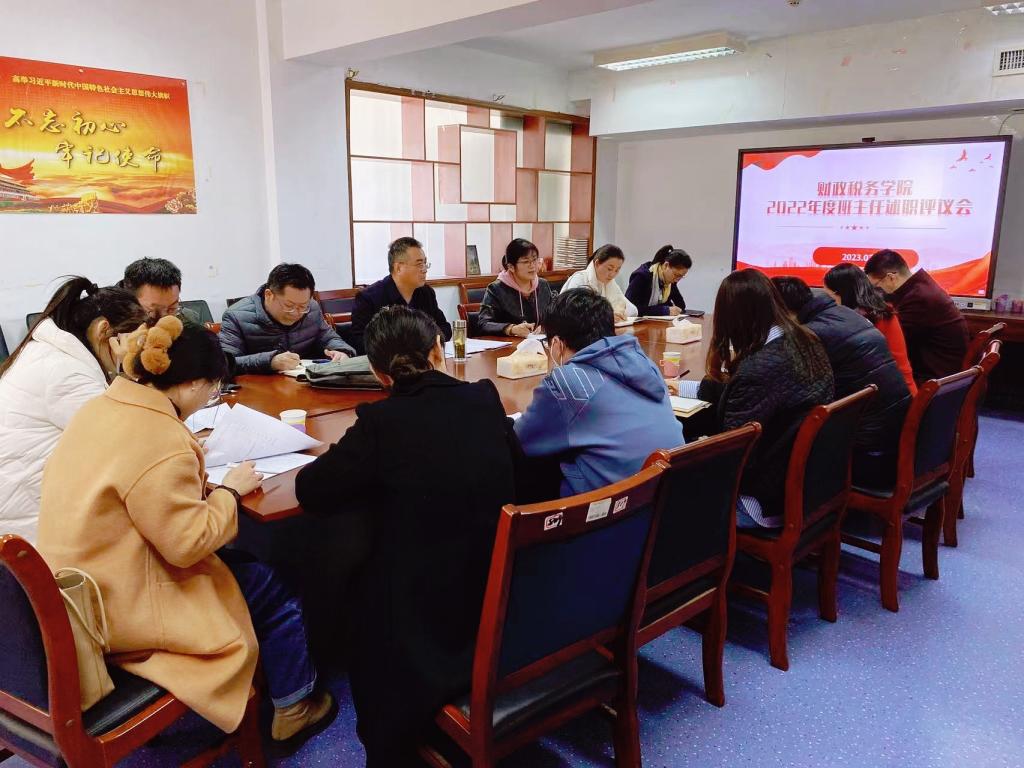 3月2日下午,财政税务学院2022年度班主任述职评议会在舜耕校区办公楼816会议室举行。学院党委副书记张代宝、滕晖出席会议,全体班主任及辅导员老师参加会议,会议由张代宝主持。
