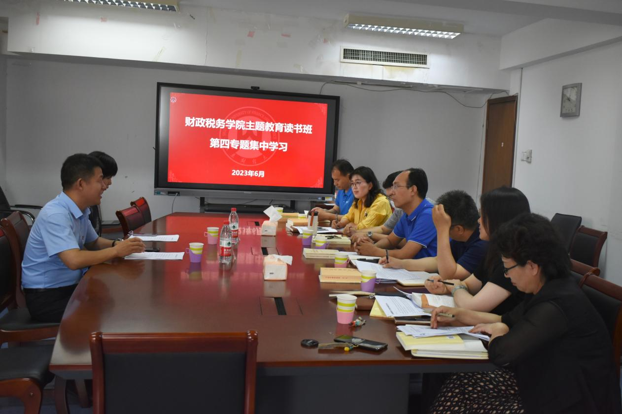 6月8-9日,财政税务学院主题教育读书班以“正确理解和大力推进中国式现代化”为专题进行第四次集中学习,重点系统学习了习近平在学习贯彻党的二十大精神研讨班开班式上发表重要讲话和5月29日习近平总书记在中共中央政治局第五次集体学习时关于教育强国建设的重要论述。校党委学生工作部副部长刘思锋、党委统战部李娅列席指导。学院党委书记刘波,院长李森,副书记张代宝、滕晖,副院长郭健、赵宝廷,经济学部办公室主任王清妍参加学习。