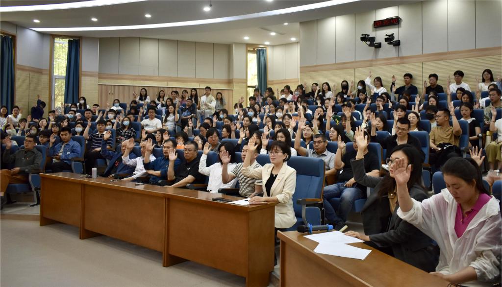 5月10日上午,财政税务学院在舜耕校区第一阶梯教室召开全体党员大会,选举学校第二次党员代表大会代表。会议由学院党委书记刘波主持,学院全体党员参加大会。