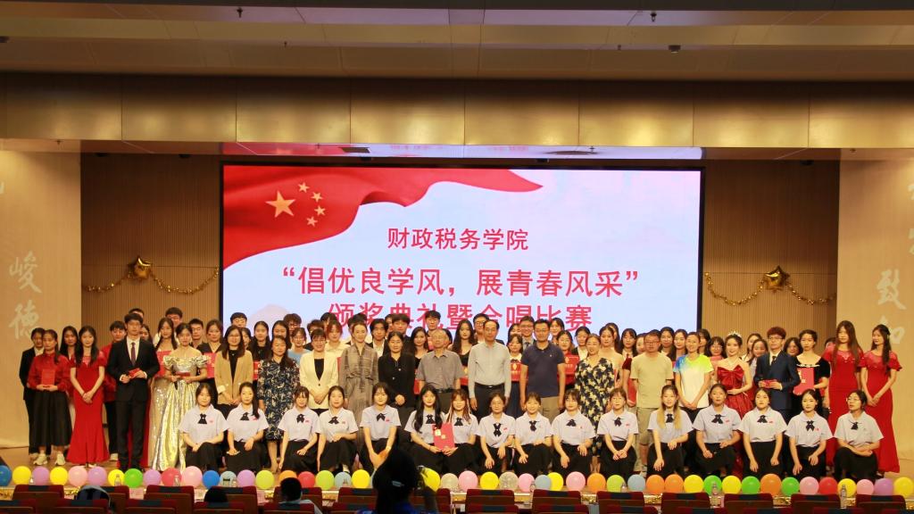 挺膺担当砺青春,奋楫扬帆启新程。此次我院“倡优良学风,展青春风采”颁奖典礼暨合唱比赛不仅是对过去一年取得的斐然成绩进行总结,也是对财税学院在未来能够永谱华章的美好期盼。立足于新起点,财政税务学院广大师生将牢记“为党育人,为国育才”的初心使命,奋力谱写新时代高水平财经大学新篇章。相信正处风华正茂之时的财税学子定能赓续学院优良学风,共赴青春时代之约!