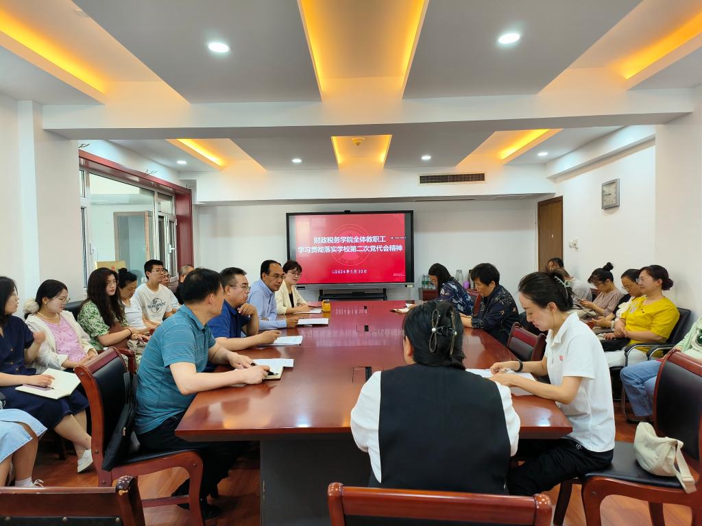 为深入学习宣传、全面贯彻落实学校第二次党代会精神,5月30日,财政税务学院召开全体教职工大会,组织全体教职工认真学习学校第二次党代会精神。学院党委书记刘波,党委副书记张代宝、滕晖,副院长赵宝廷出席会议;全体教职工参加会议。会议由刘波主持。