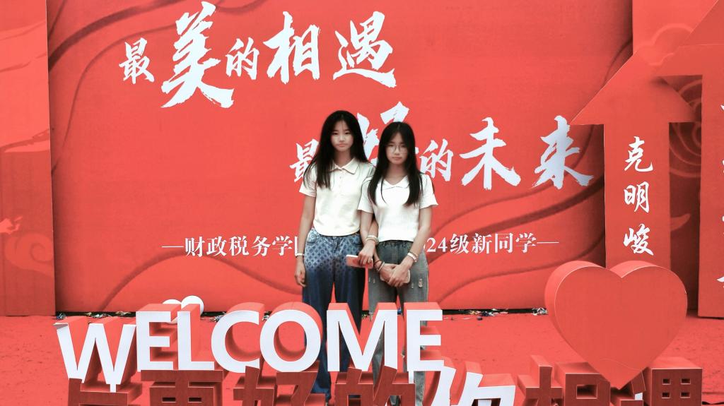 携手并肩,逐光而行。在学校迎新现场,有这样两位特别的同学,她们高中时是并肩作战的同桌,在今年高考中又以相同分数考入我院税收学专业,她们分别是来自税收学四班的李欣洁和税收学一班的吕佳璇。在采访中,她们说道:“与好朋友考入同一所大学是我们青春岁月中最美好的记忆,在未来的日子里,我们将以更加饱满的热情和坚定的信念,共同书写属于我们的精彩篇章。”