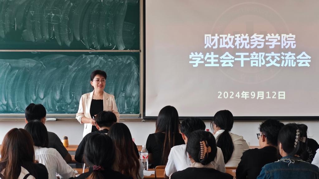 9月12日,财政税务学院新学期学生会干部交流会于圣井校区圆满举行。学院党委副书记滕晖、辅导员李子云出席了本次会议,2024届学生会主席团成员及各部门部长参加了本次会议。